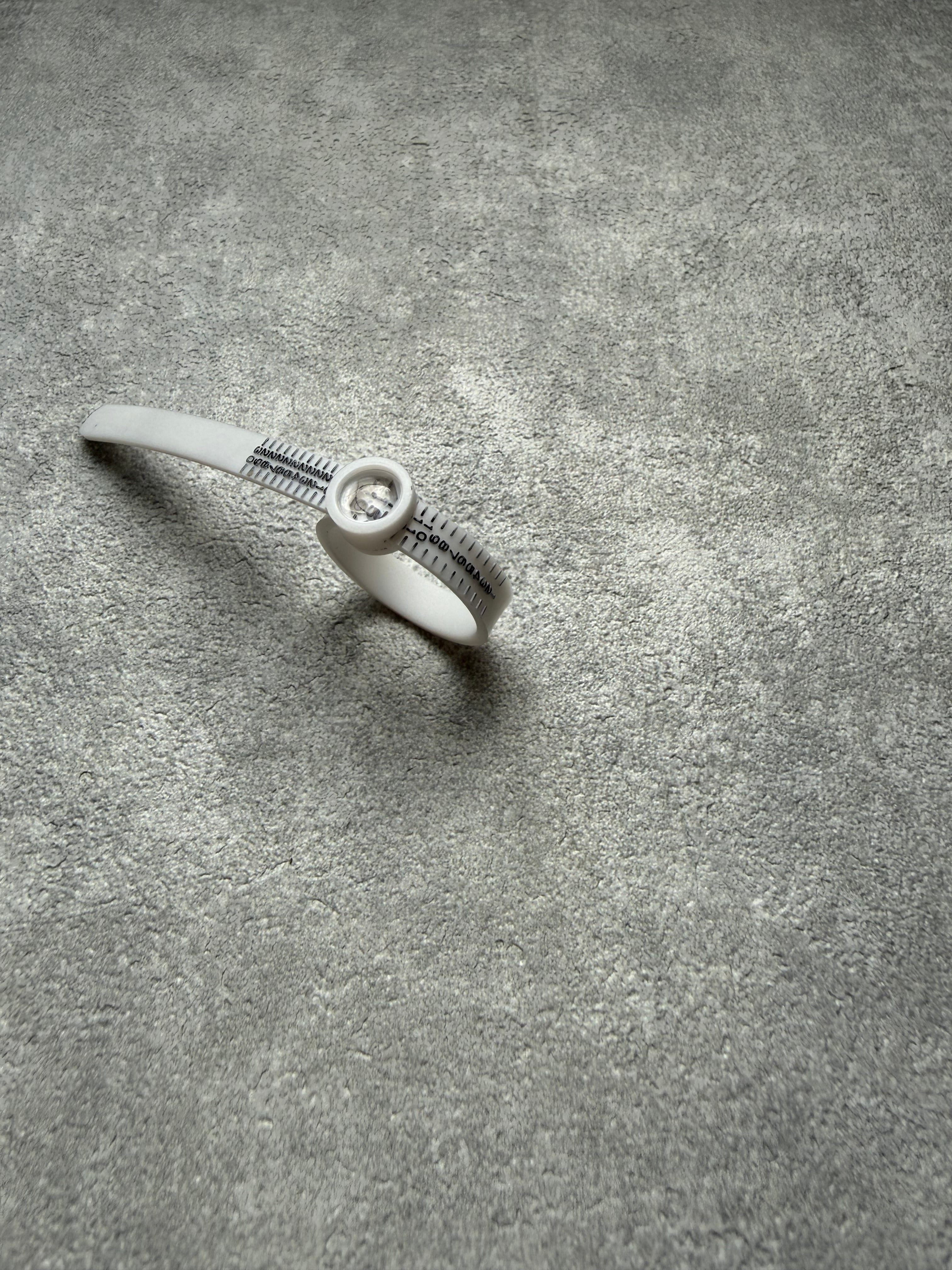 自宅で指のサイズを測れる便利なゲージです。オーダーや購入前のサイズ確認にどうぞ。
